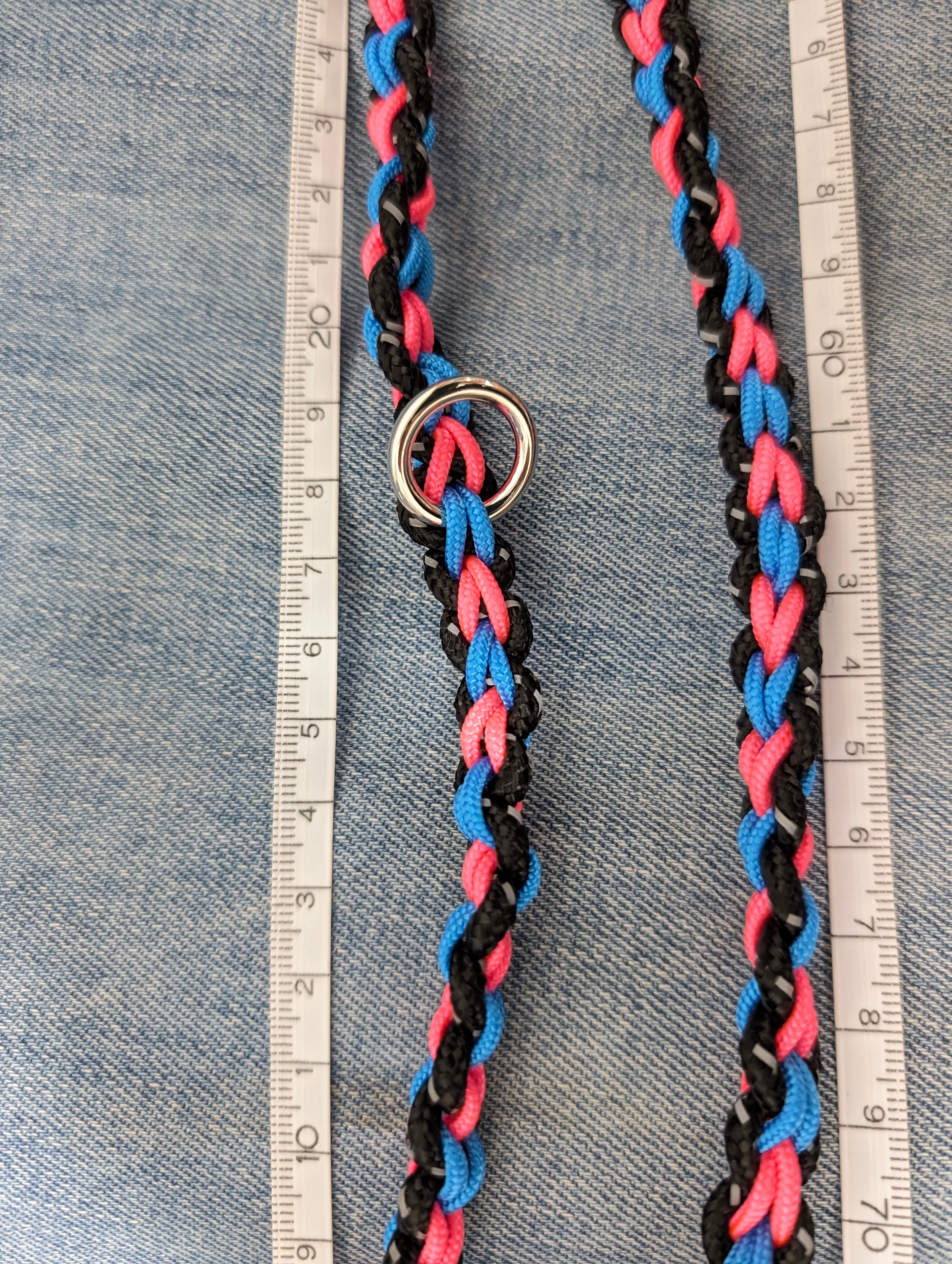 この商品は、ブルー、ピンク、ブラックのトリコロールに配置された鮮やかなデザインのリードです。おしゃれなだけでなく、愛犬のお散歩やトレーニングに最適なアイテムとなっています。